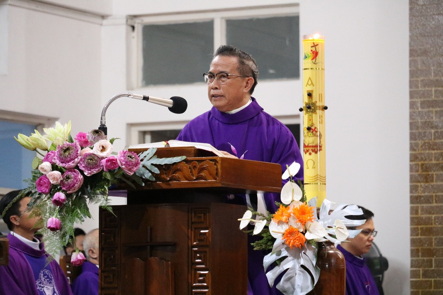 Mở đầu Thánh lễ, Cha Giám đốc Gioan Baotixita Ngô Đình Tiến gợi lên cho cộng đoàn gương sáng và những đóng góp không ngừng nghỉ của Đức cha Phêrô trong việc hình thành, phát triển Đại Chủng viện và cũng như trong công cuộc đào tạo hàng linh mục của Chúa.